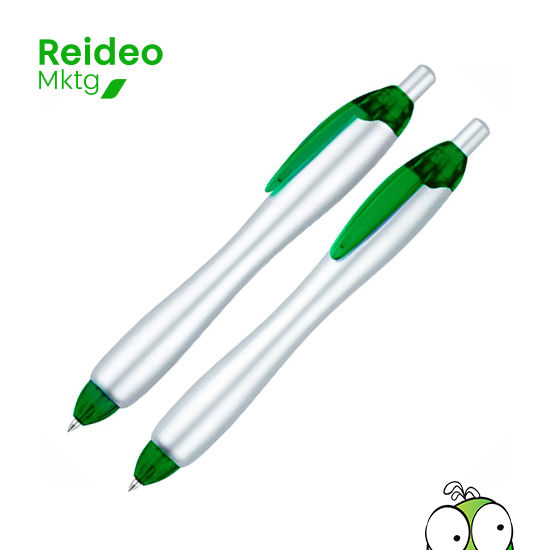 Bolígrafo plástico "Gordito Silver" con cuerpo plateado opaco y terminales de color translúcido. El bolígrafo más vendido de Europa el año 2012. Escritura azul.