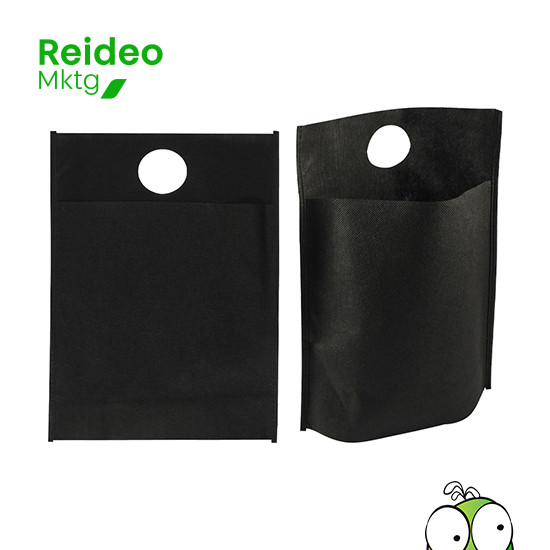 Bolsa basurero para vehículo, en tela no tejida (TNT) de 80g/m2, con fuelle interior de 10cm de fondo. Ideal para usar como basurero o papelero, en la palanca de cambio o asiento trasero.