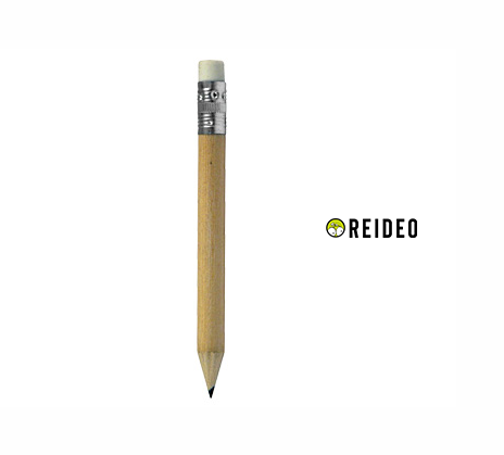 Lápiz grafito corto de madera barnizada. Cuerpo 100% cilíndrico, ideal para imprimir logos sin problemas. Incluye goma de borrar y viene con punta lista.