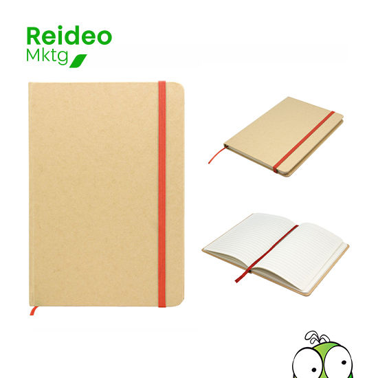 Papel. Libreta. Tapa en papel kraft. Interior 80 hojas rayadas en papel de 70 g. Cinta señaladora y cierre elástico del mismo color.
